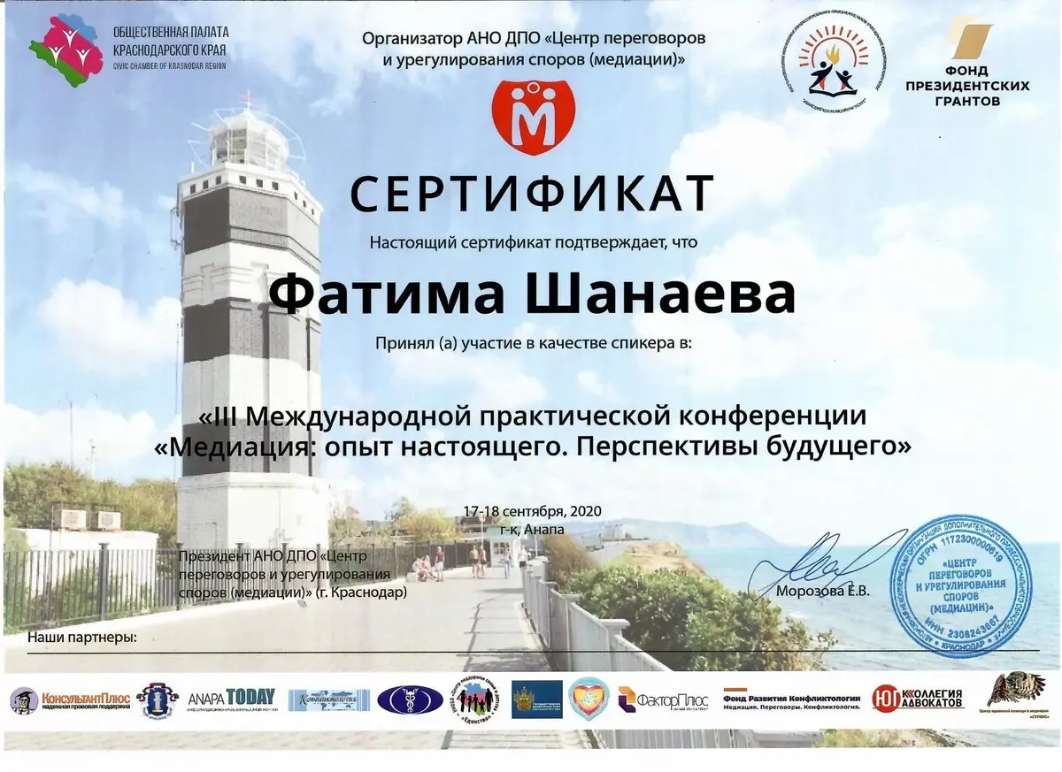 Вот уже третий год Международная практическая конференция по медиации в Анапе объединяет участников из разных стран для обсуждения актуальных вопросов применения и продвижения медиации и обмена опытом. В этом году мероприятие проходило по двум направлениям: «Медиация: опыт настоящего. Перспективы будущего» для медиаторов, юристов, адвокатов, руководителей бизнеса и др. специалистов и «Медиация в образовании и при работе с семьями с участием несовершеннолетних детей». В конференции приняли участие: медиаторы России, Беларуси, Казахстана, Азербайджана и др. стран, представители органов власти, судейского сообщества, юристы, представители НКО, отраслевых профессиональных сообществ, предприниматели.